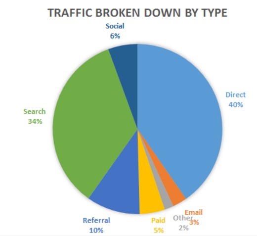We mention earlier that small businesses can take advantage of social channels to engage with customers. Direct, search and referral traffic still trump social traffic in percentage with 40 percent, 34 percent and 10 percent respectively.